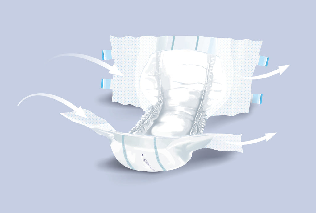 - Inkontinenzwindel mit Seitenflügeln aus einem weichen und atmungsaktiven Vlies